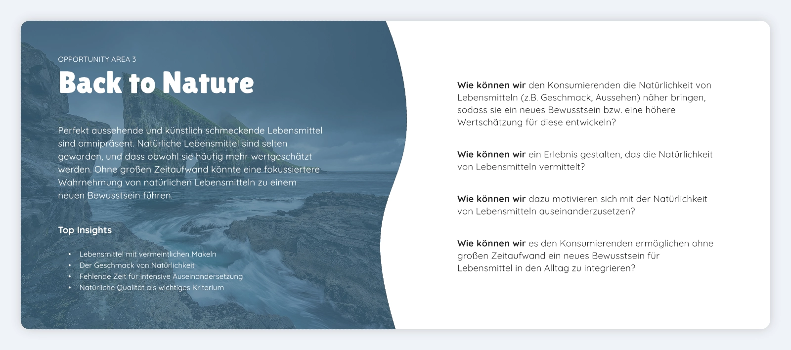Auf Grundlage der Erkenntnisse aus der Benchmarkanalyse entschieden wir uns, mit Opportunity Area 3 weiterzuarbeiten. Wir formulierten daraufhin vier How-Might-We Fragen, die als Ausgangspunkt für die Ideation-Phase dienten.