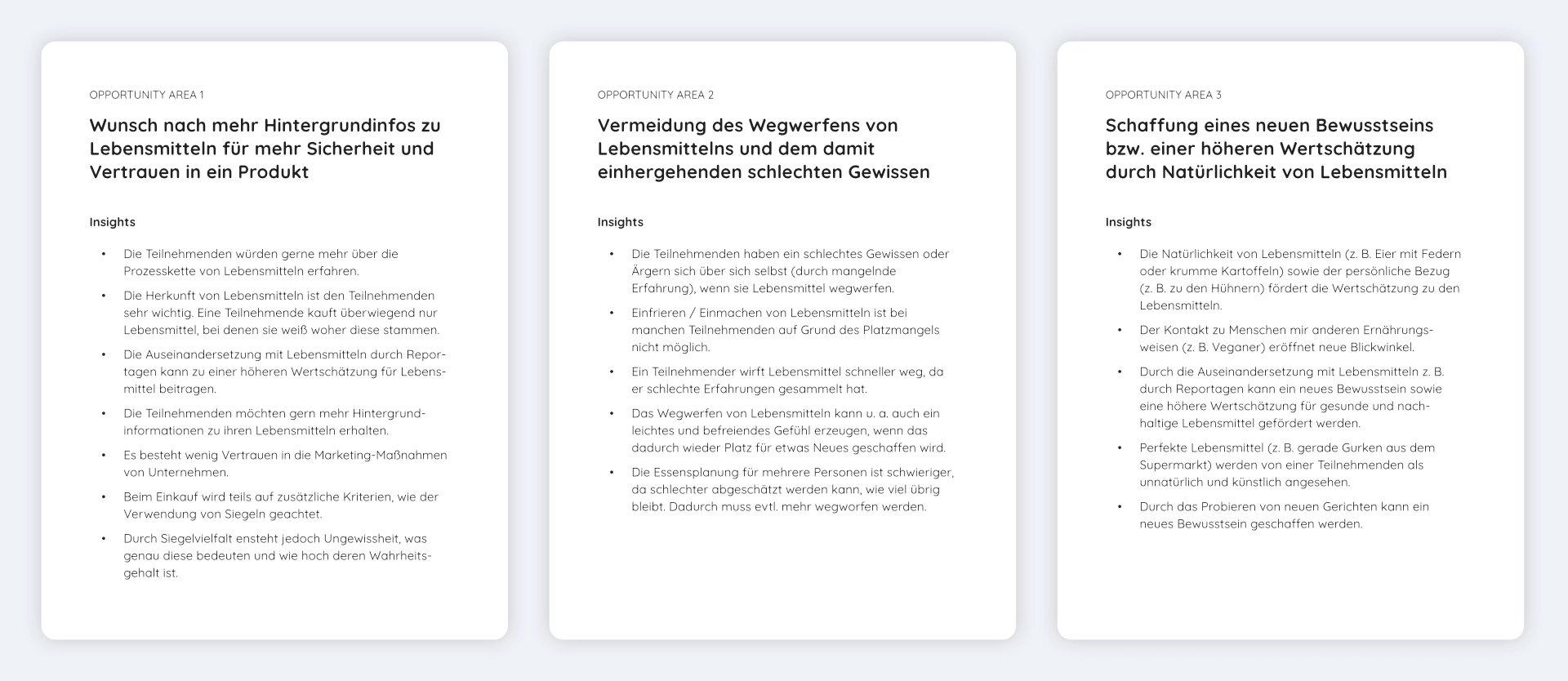 Aus den Ergebnissen der Auswertung konnten wir drei zentrale Opportunity Areas ableiten, die uns einen wertvollen Anhaltspunkt für die Entwicklung eines neuen Services gaben.
